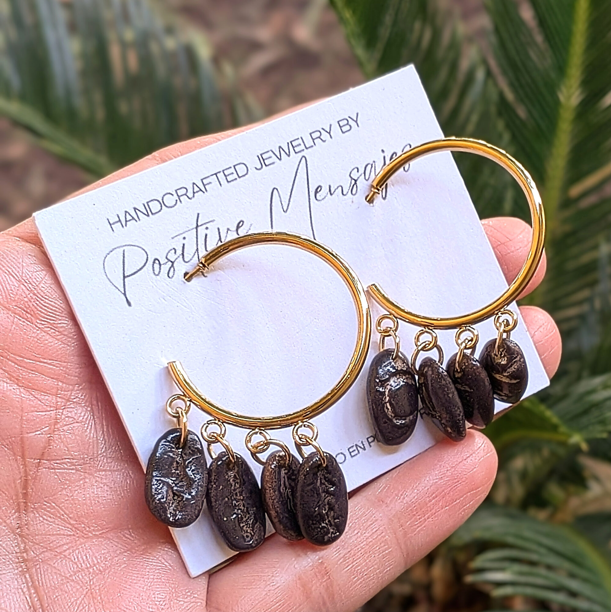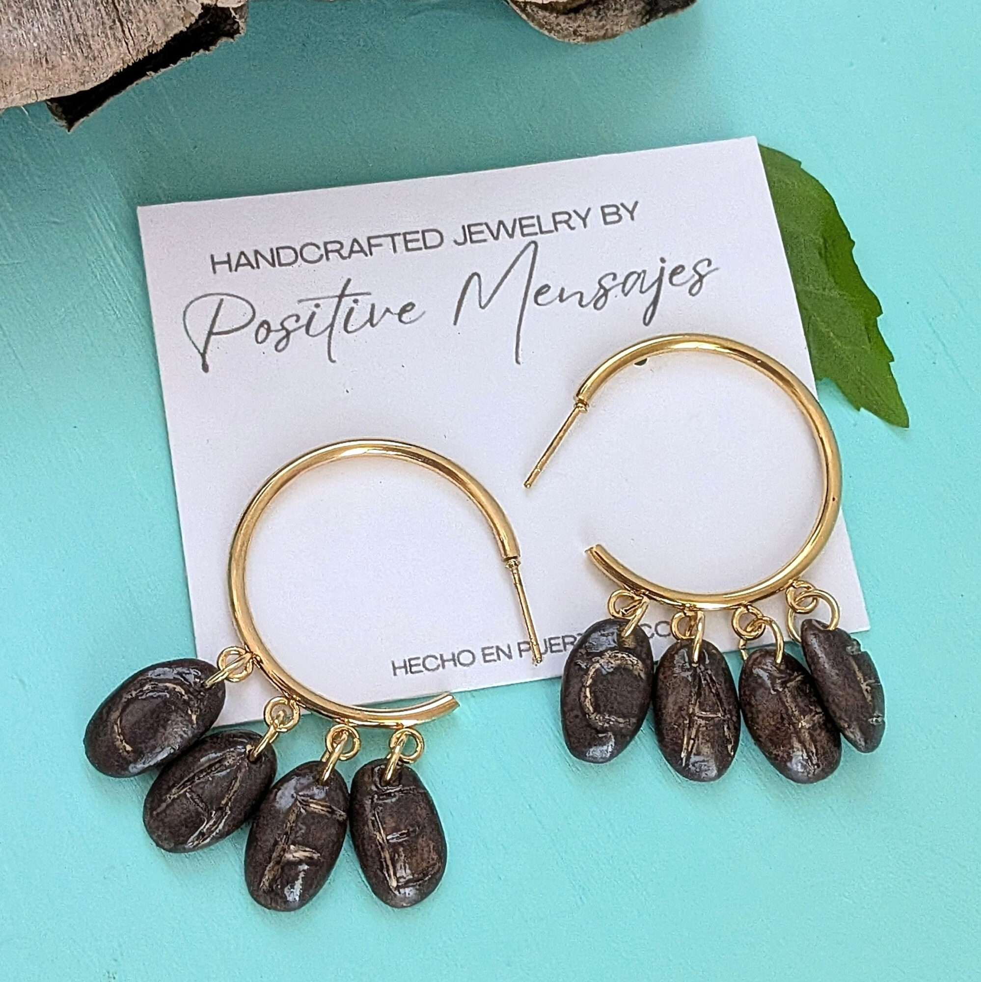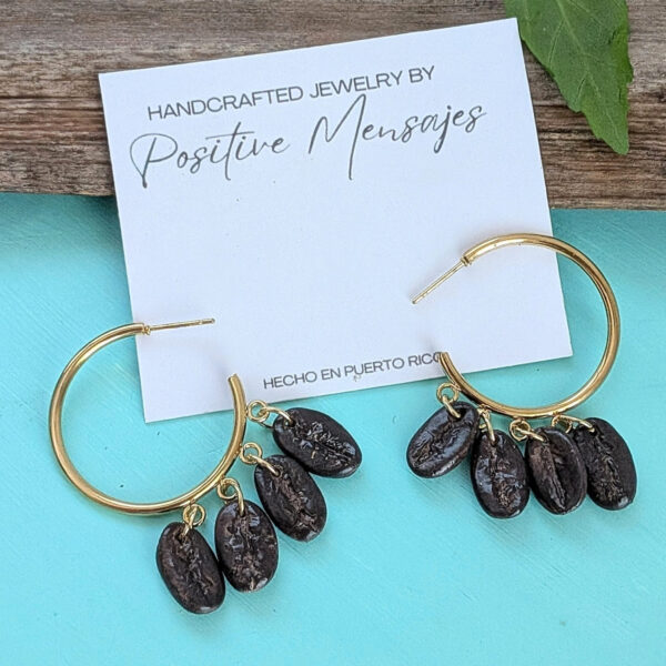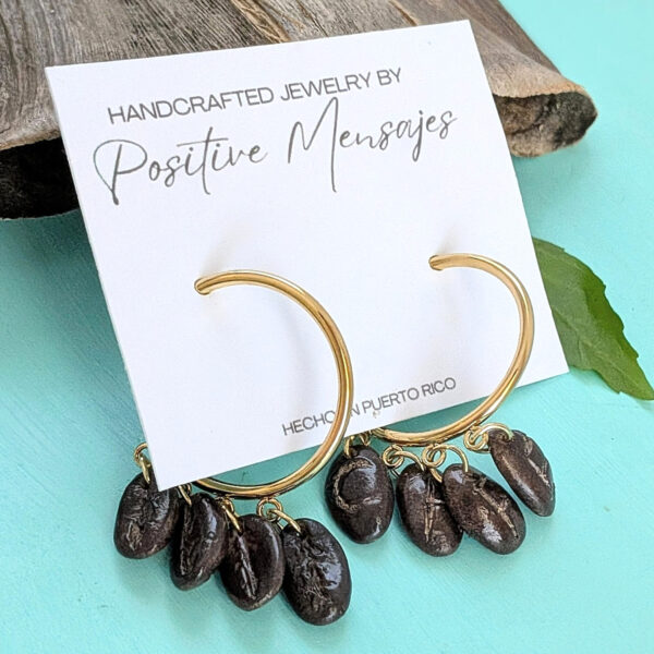 For our free-spirited coffee lovers! These bohemian-inspired coffee bean earrings feature the Latin word “Café.” Perfect for sipping your favorite black coffee or Café Con Leche. Handmade and ships from Puerto Rico.