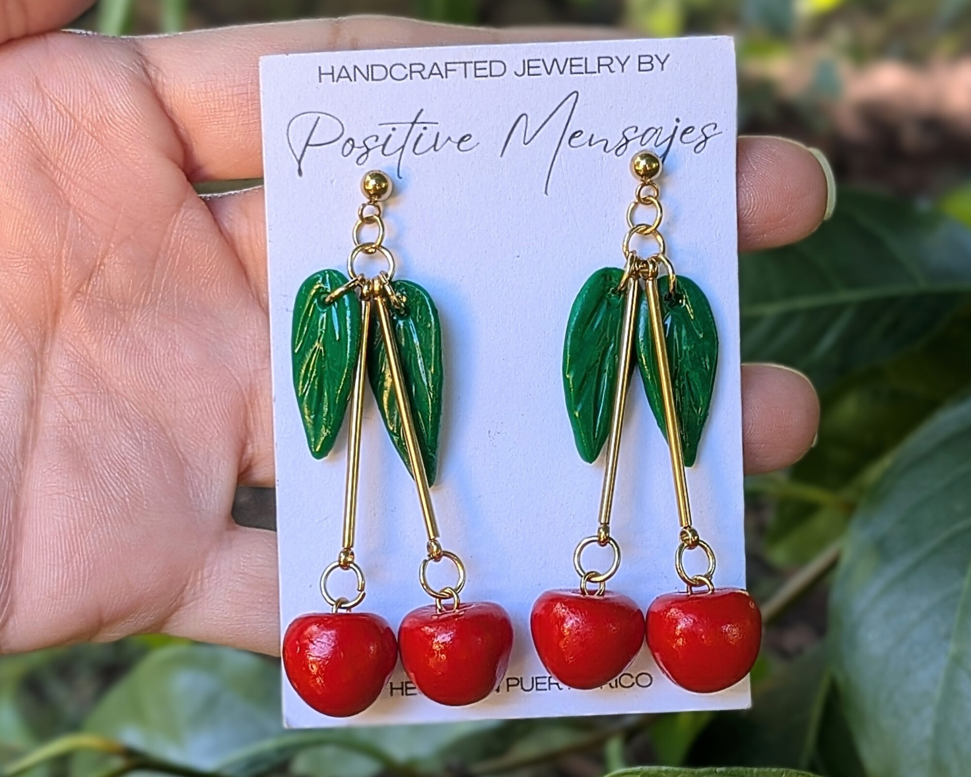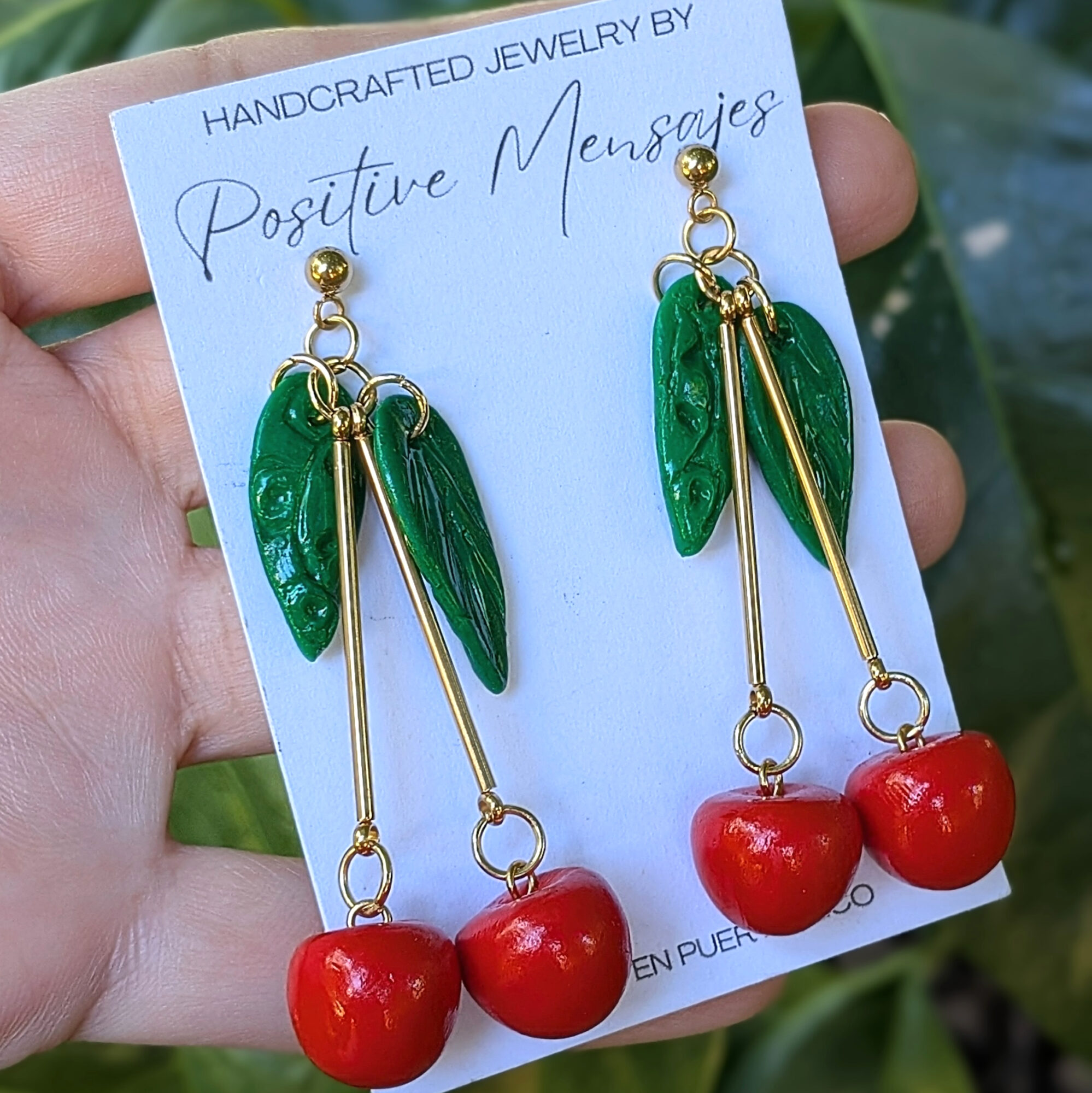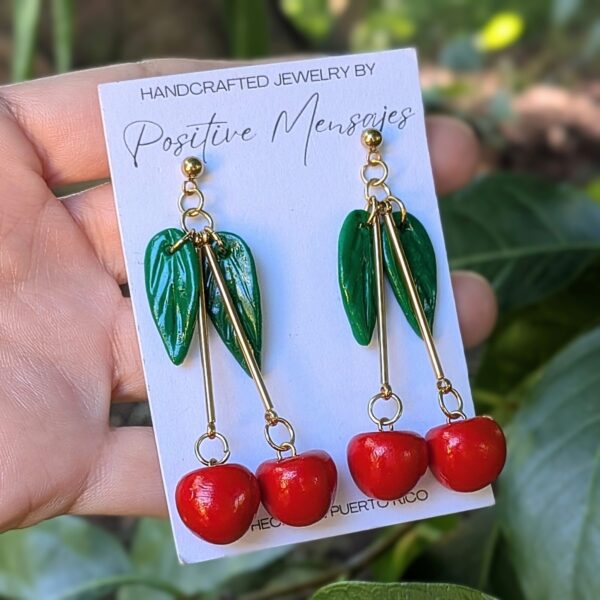 Wear these pretty cherry earrings while sipping a Piña Colada on the beaches of Puerto Rico! Inspired by one of our island’s most popular drinks, these earrings also pay homage to Puerto Rico’s rich Taino heritage, with hand-carved Taino Sun symbols subtly peeking on the back of each leaf. A perfect blend of tropical fun and culture!