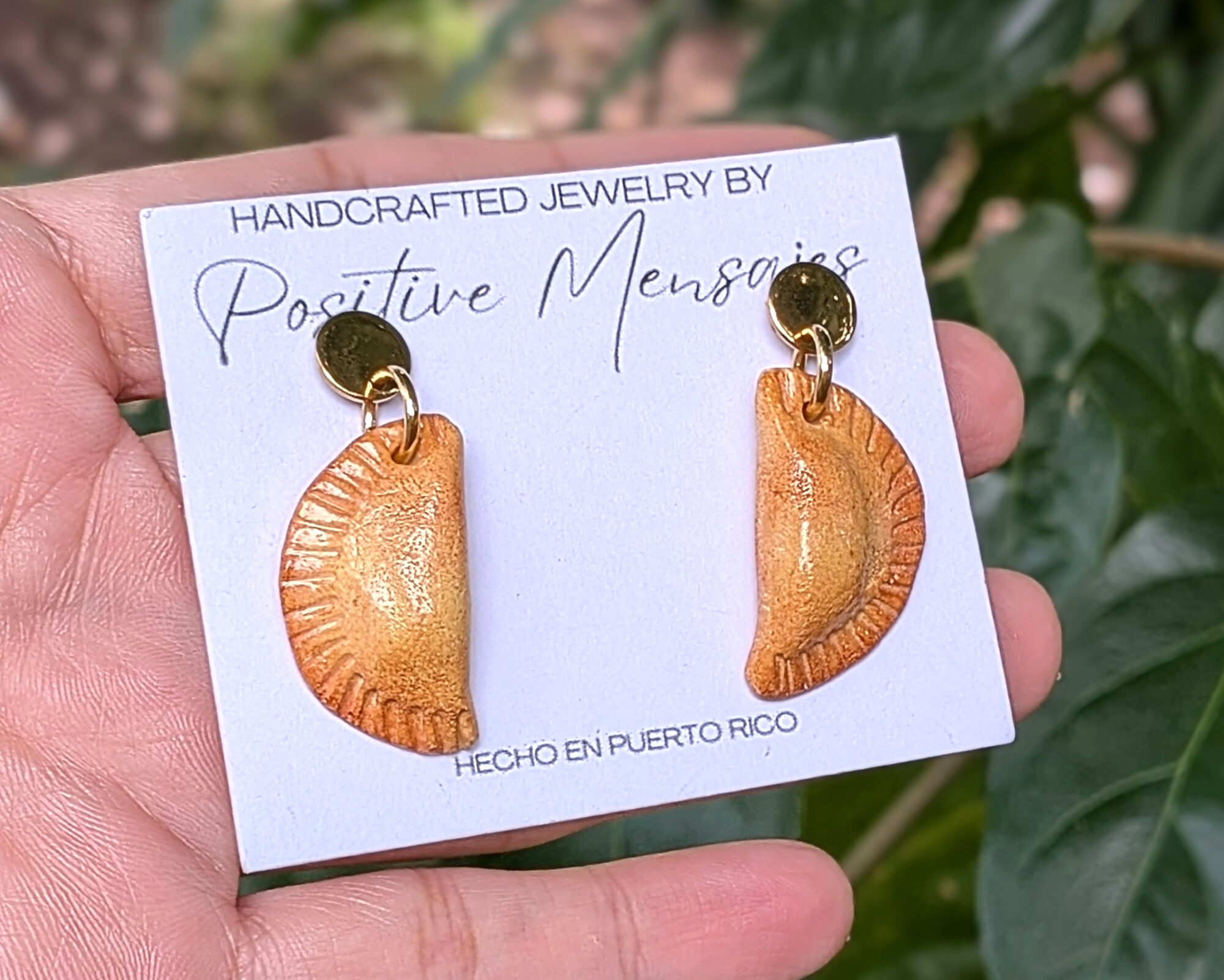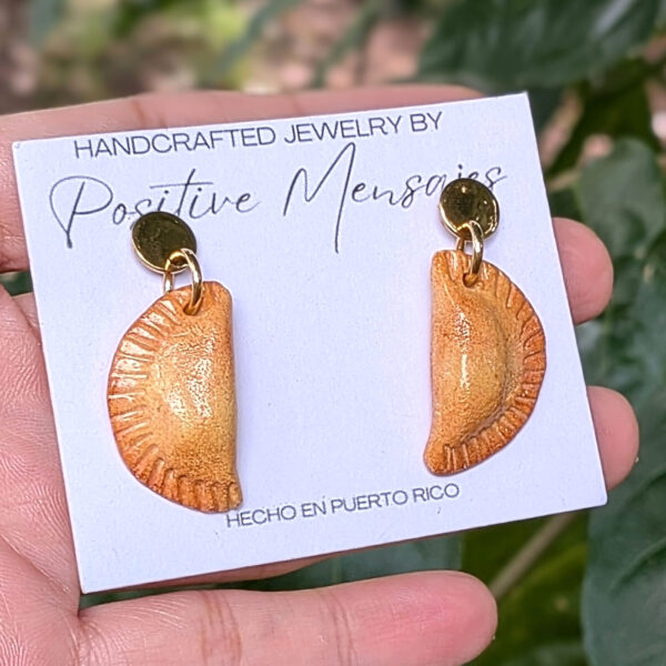 These playful, Latin-inspired Empanadilla earrings celebrate Puerto Rico’s street food culture, featuring the classic fried beef turnovers we all know and love.