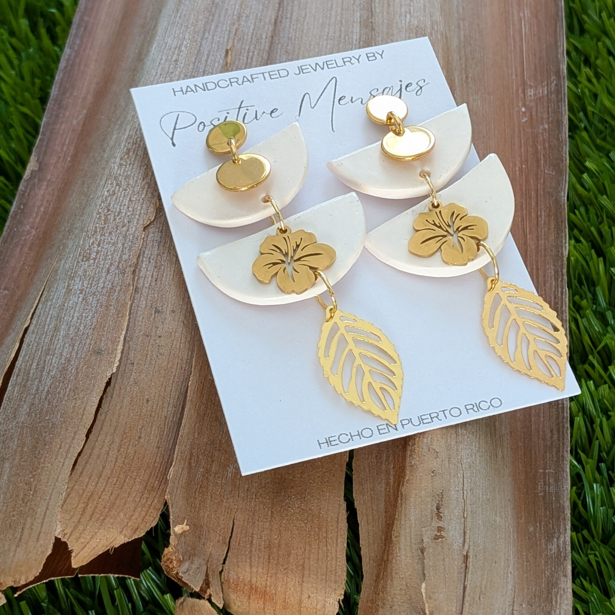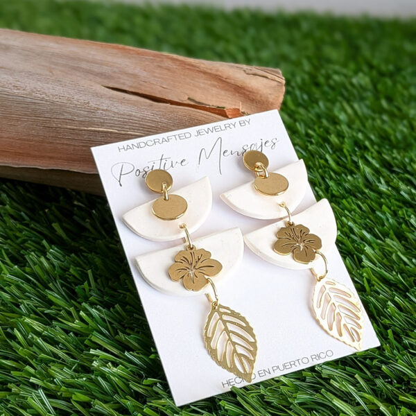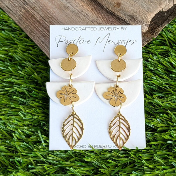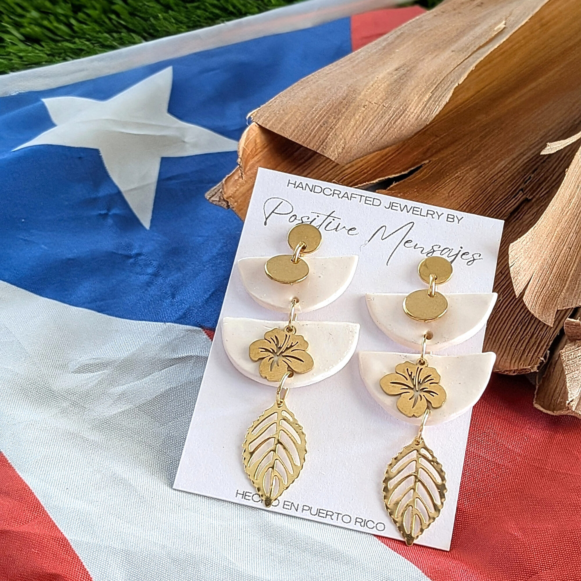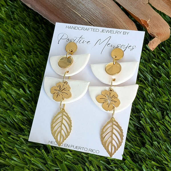 An elegant and stylish way to show love for our culture, these earrings bring together symbols that reflect Puerto Rico. The upside-down semi-circle shapes pay tribute to our Taíno heritage, while the Flor de Maga charm represents Puerto Rico’s national flower. The elongated design creates a modern, eye-catching silhouette.