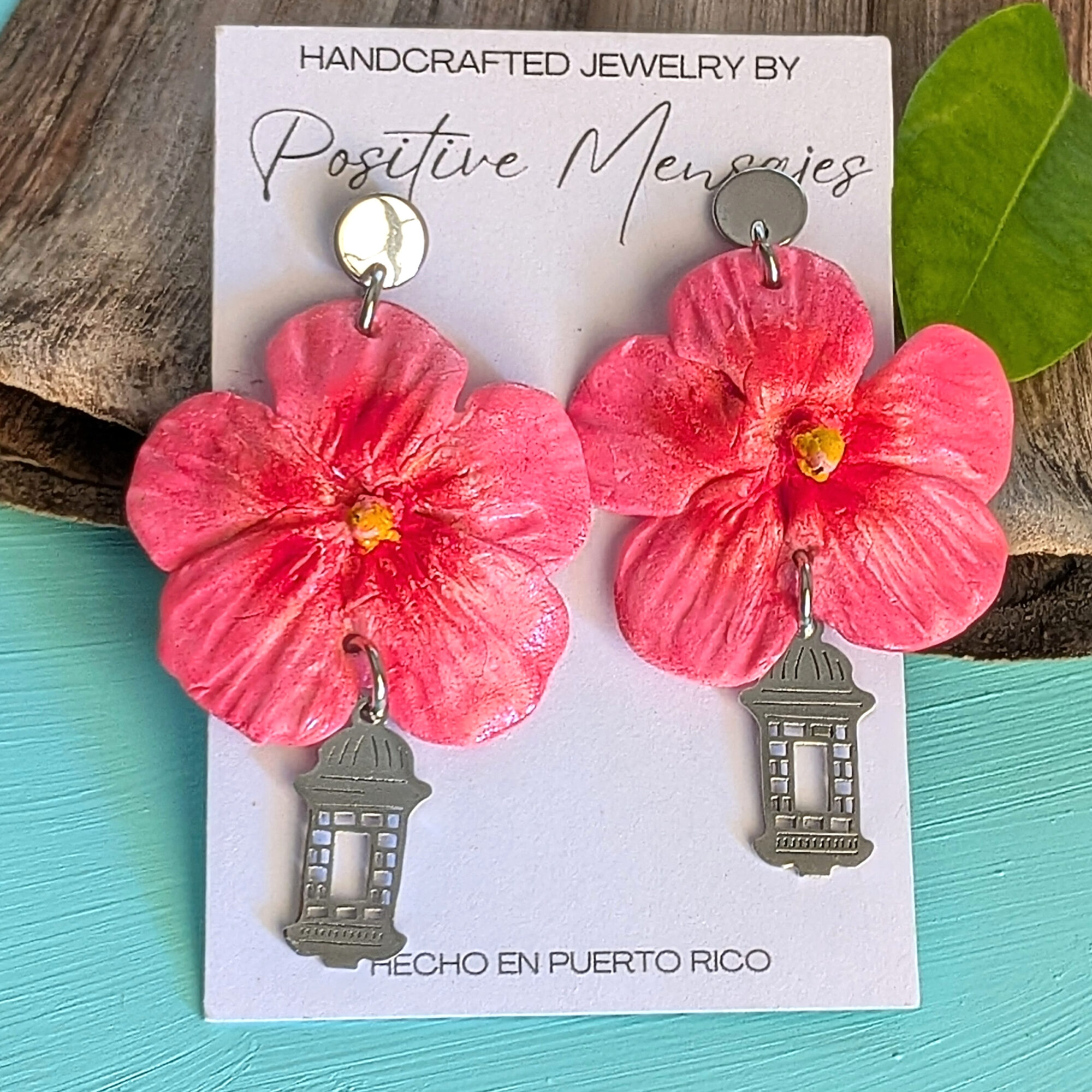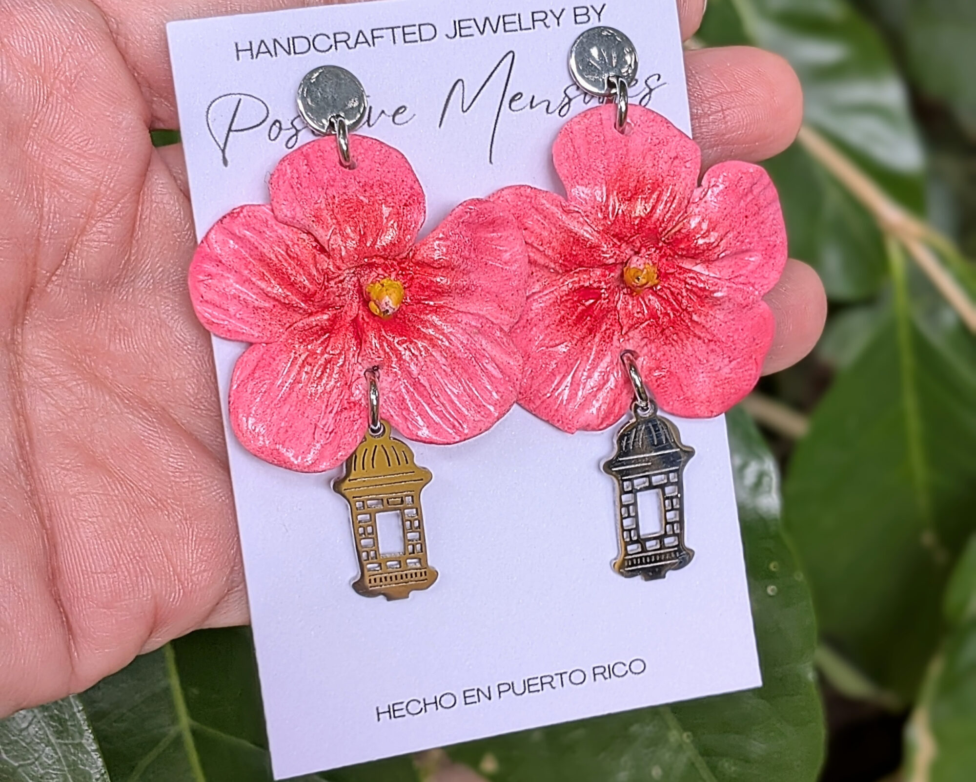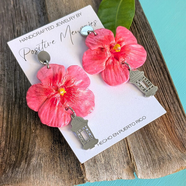 Inspired by the heart of our island, these earrings blend artistry and tradition. A silver-toned stainless steel Garita charm hangs from a hand-carved Flor de Maga flower — Puerto Rico’s national flower and a symbol of pride. Each flower is carved with lifelike detail, featuring a raised yellow center representing the pollen, surrounded by rich red that gradually transitions into soft pink petals. The design captures the beauty, strength, and artistry that reflect our island spirit.