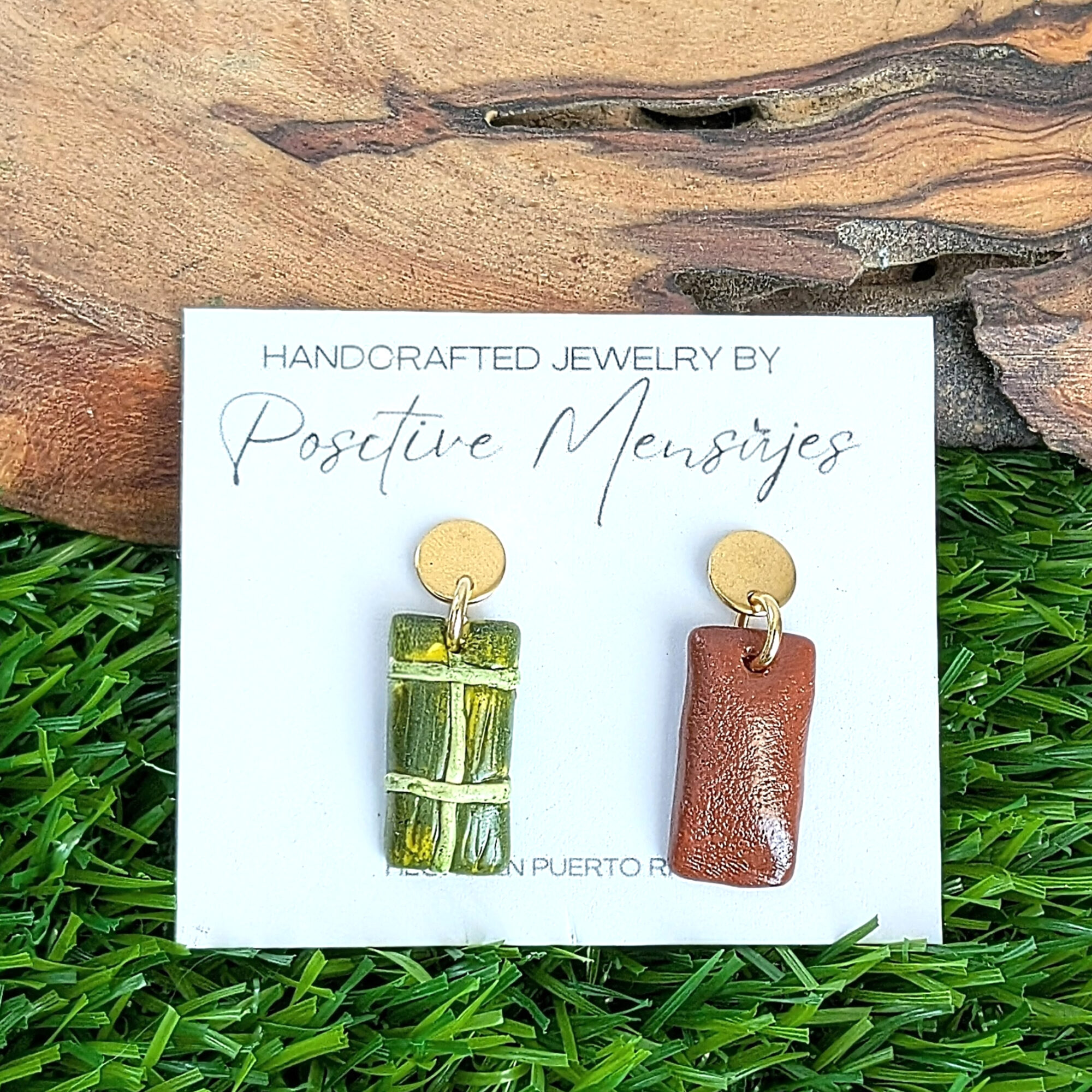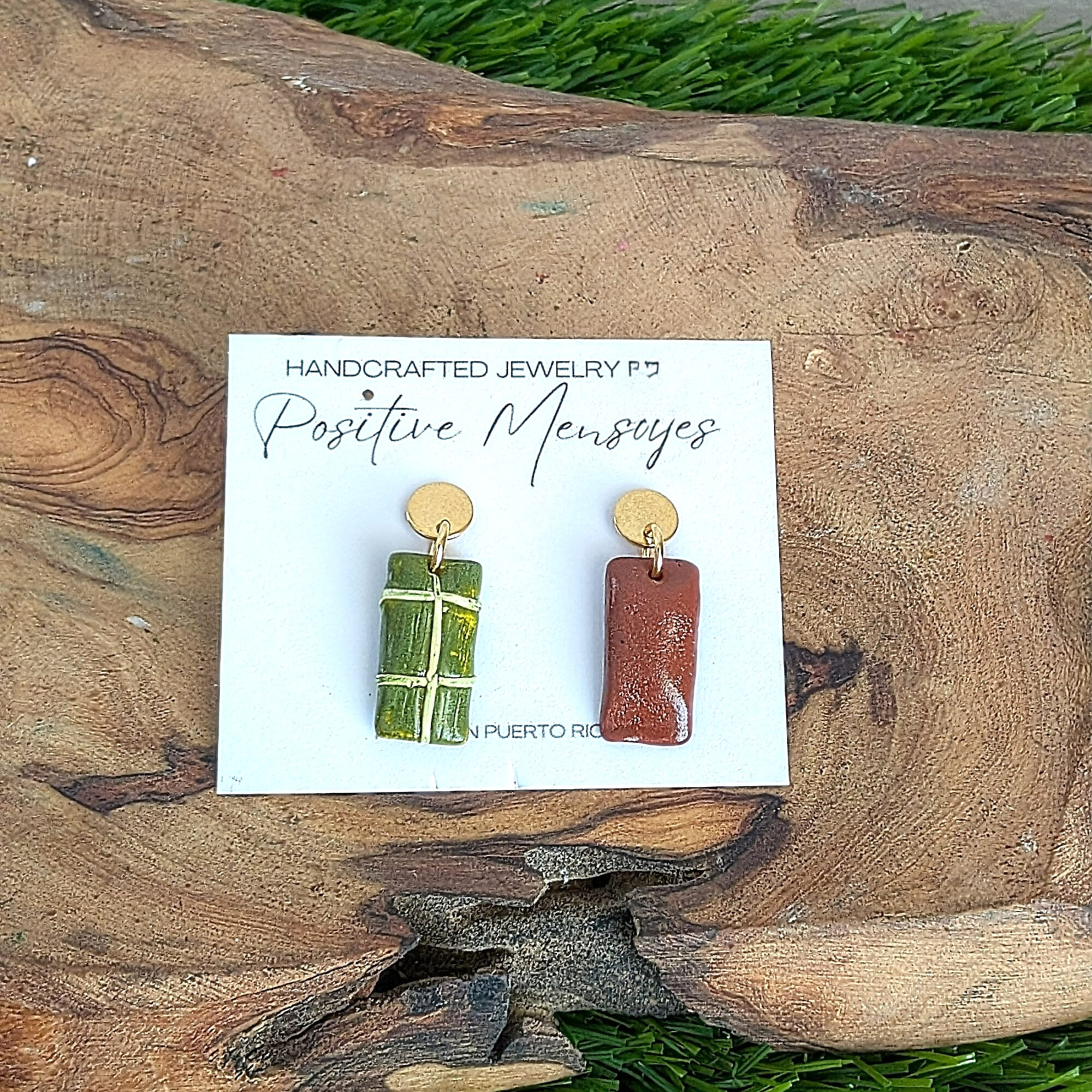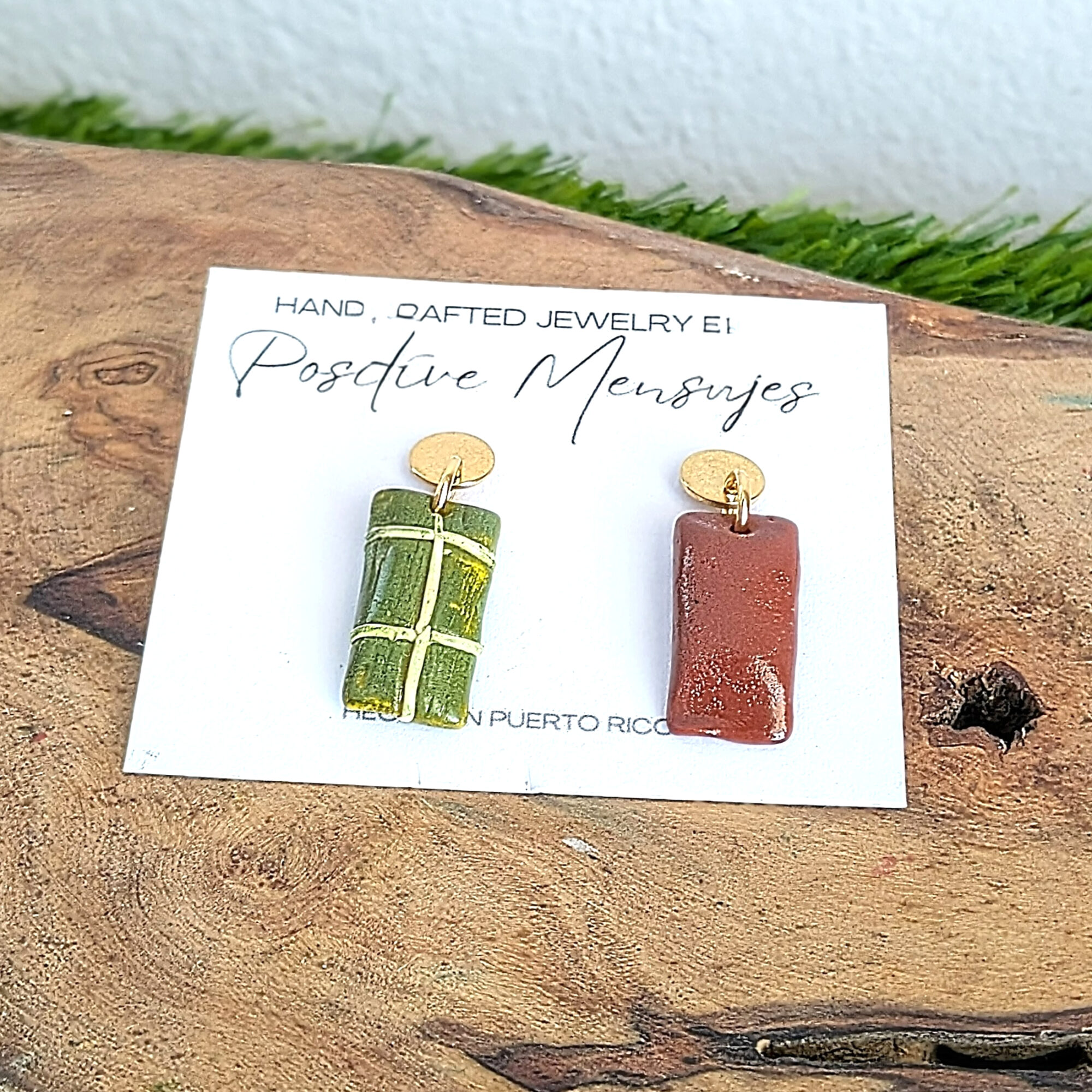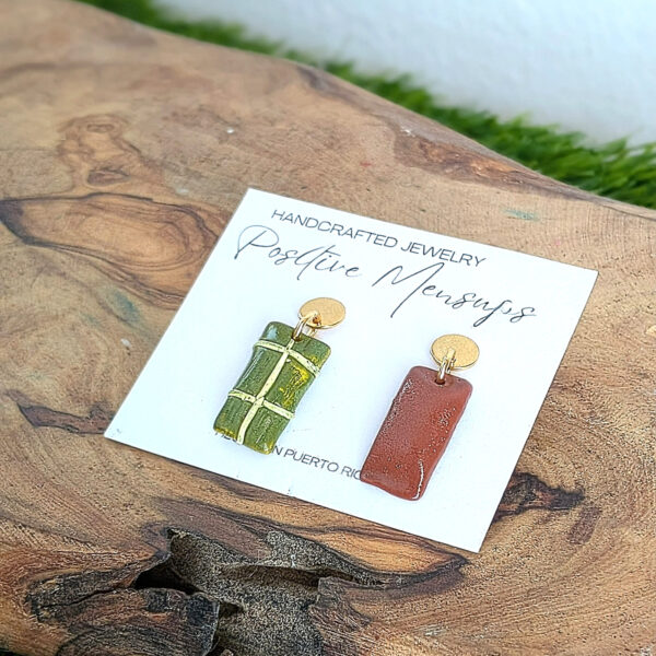 Celebrate Puerto Rican holiday feasts with these playful mismatched earrings! One earring features a wrapped pastel tied with a charming bow, while the other showcases an unwrapped pastel de masa. These earrings let you proudly display your love for this beloved dish.
