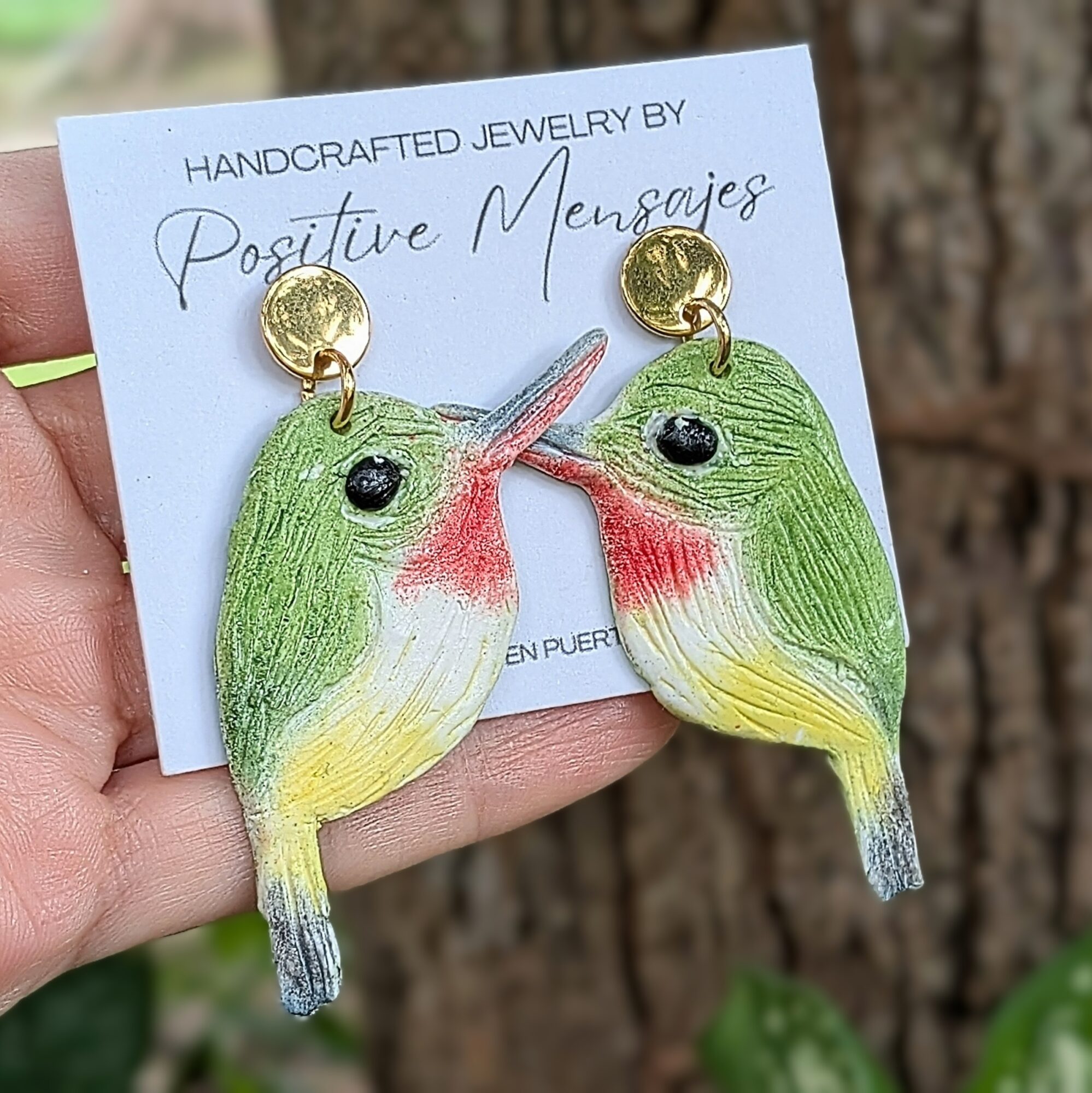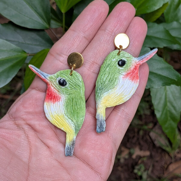 Bring a piece of Puerto Rico to your look with these handcrafted earrings inspired by the San Pedrito (Puerto Rican Tody), a tiny bird found only on the island. Each earring features a slightly elongated beak for artistic detail, giving it a playful, eye-catching design that’s perfect for showing your love for Boricua culture or gifting to a bird enthusiast.