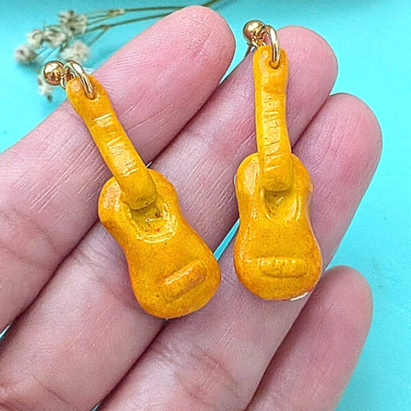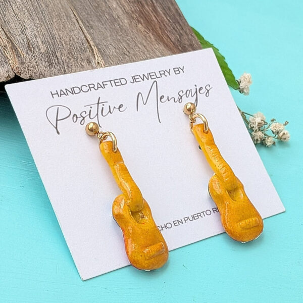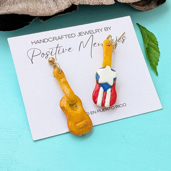 Parranda!! Celebrate the holiday season with these classic guitar earrings from Puerto Rico, made especially for music lovers. The front of the earrings is inspired by the classical guitar, while the back features the Puerto Rican flag. Handcrafted with care, these earrings will add a musical touch to your collection or make a perfect gift for your favorite music lover.