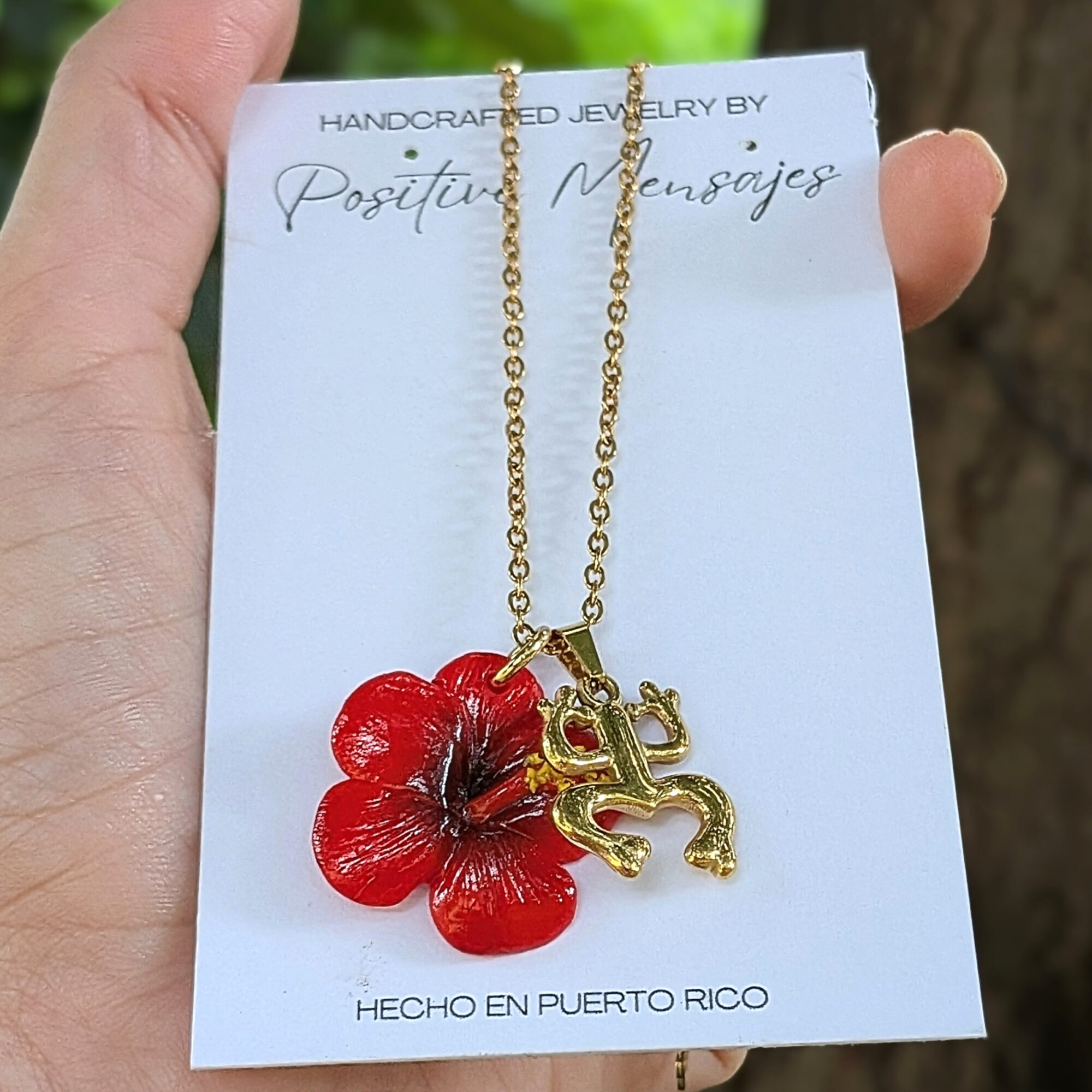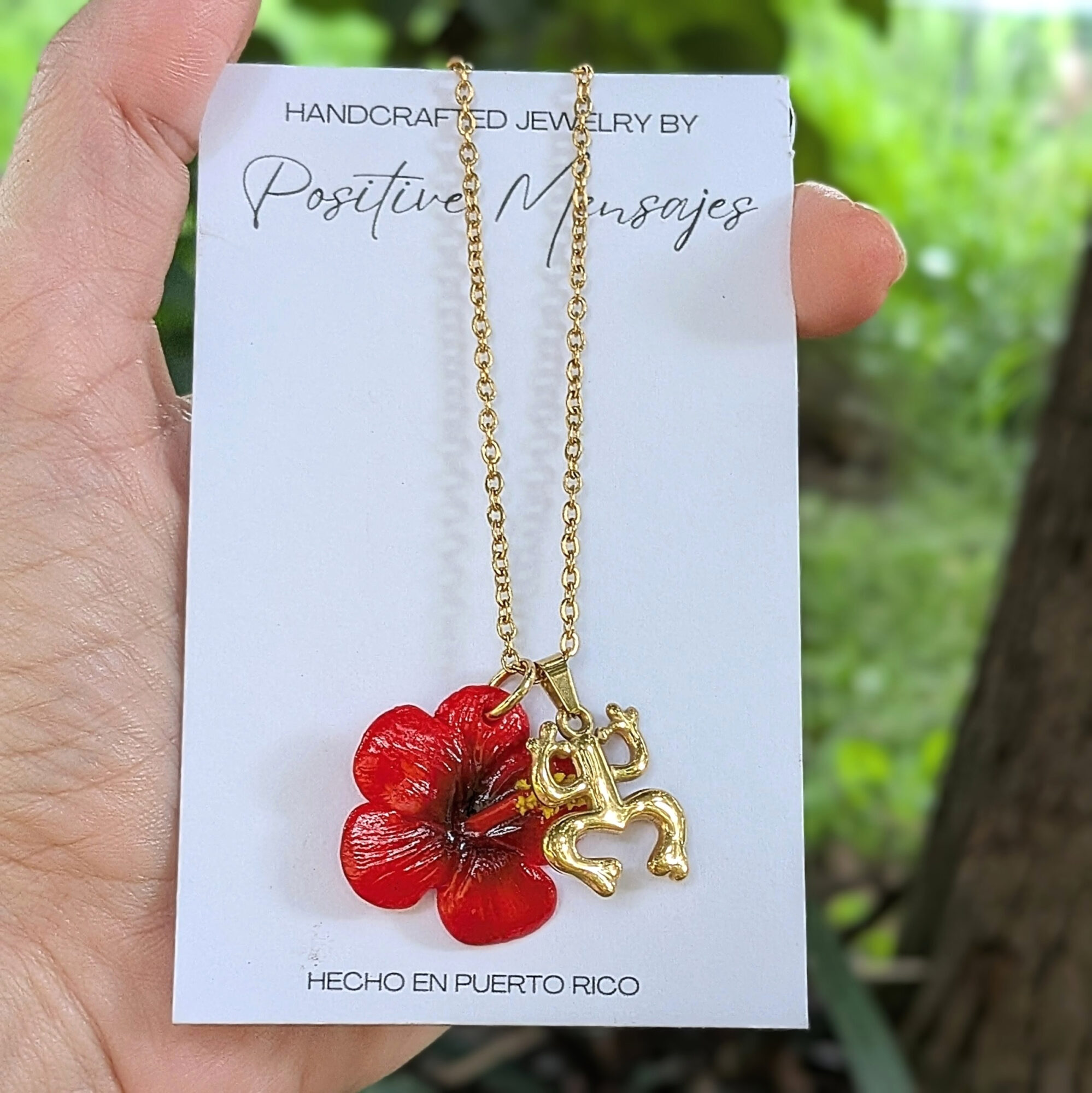 Celebrate your Boricua pride with this beautiful necklace. It features a Taíno Coquí symbol pendant and a handcrafted red flower inspired by Puerto Rico’s Flor de Maga and amapola. A meaningful design that blends cultural heritage with the beauty of the island.