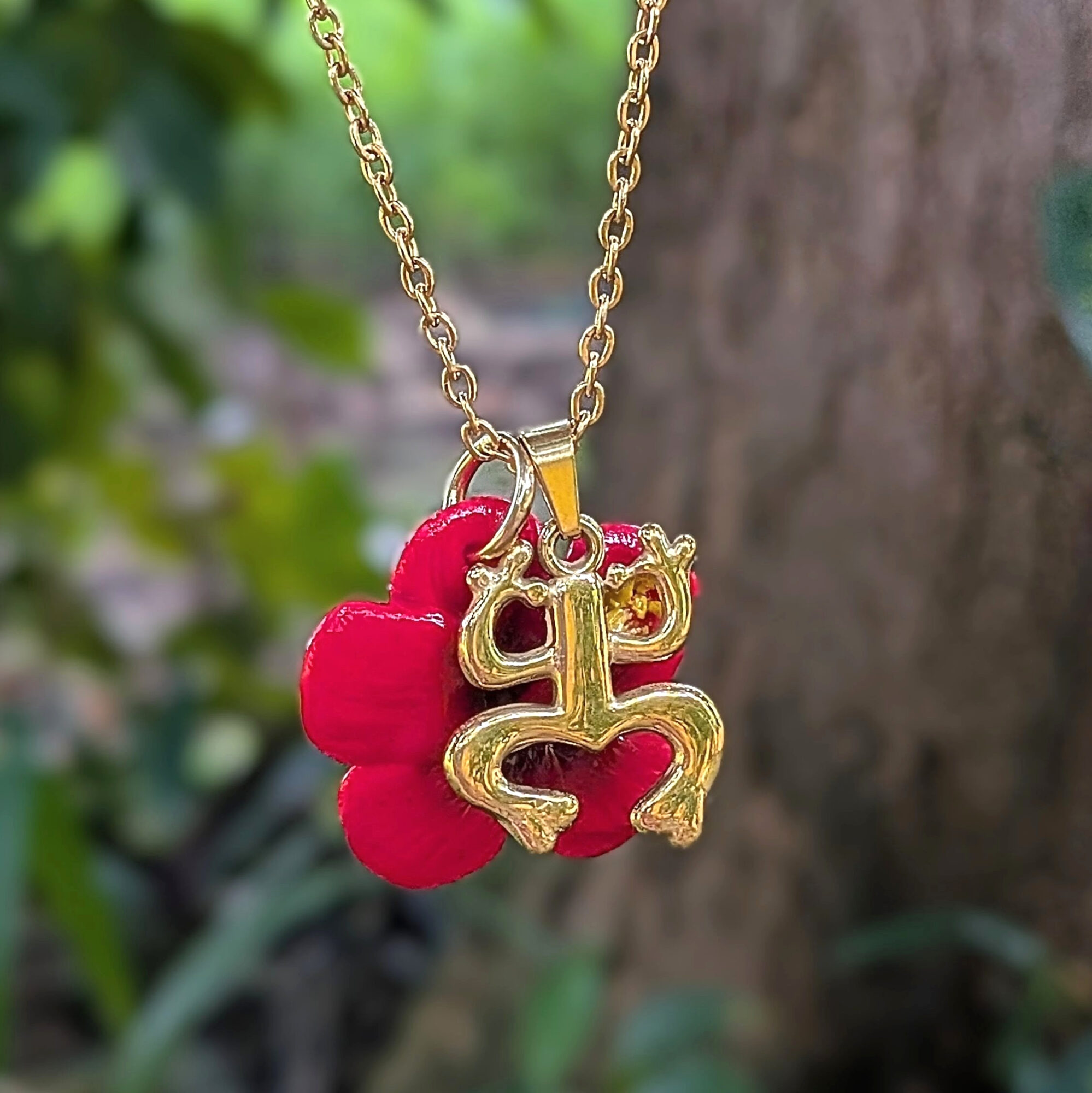 Taíno Coquí Symbol Necklace with Flor de Maga Flower Taíno Coquí Symbol Necklace with Flor de Maga Flower